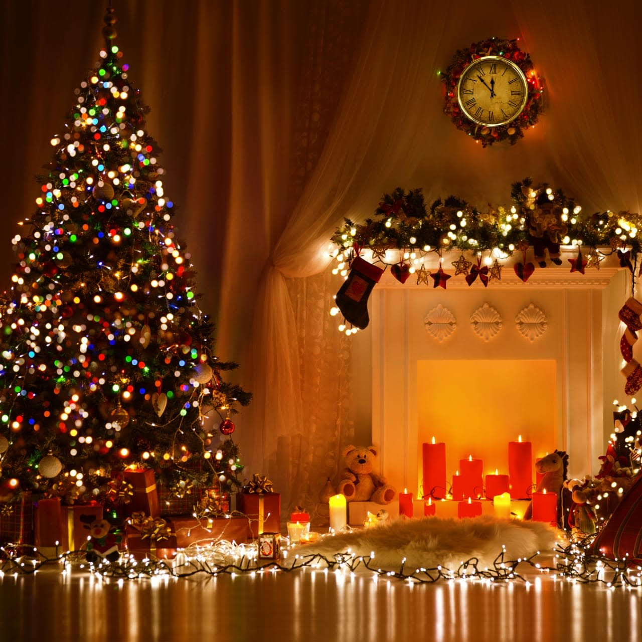 - рисунка еловых веток, украшенных мишурой и шарами.